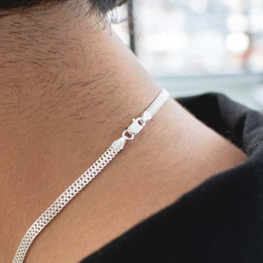 Pulsera Tejida de Eslabones 3mm Plata Ley 925