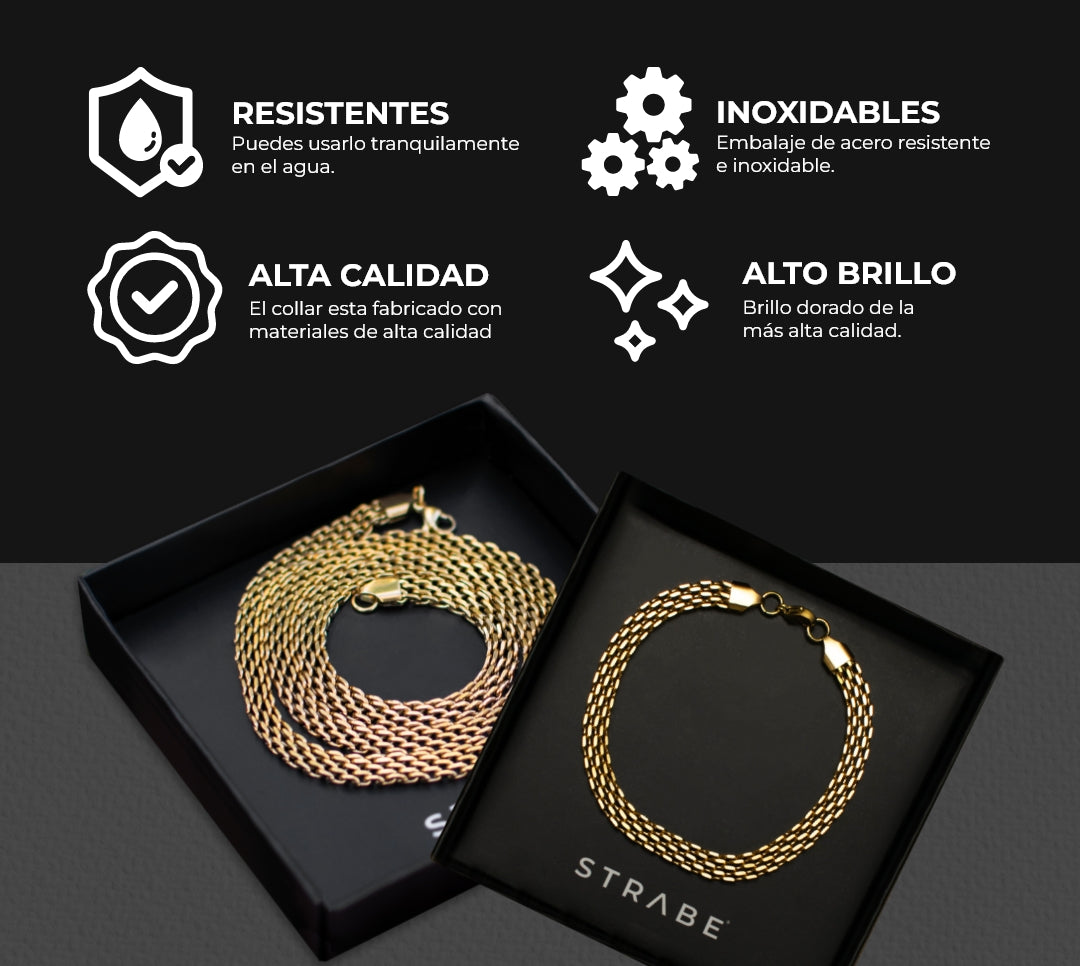 Joyas de acero inoxidable quirúrgico, diseñadas para resistir sudor, agua y calor. La mejor opción para lucir exclusivo con piezas que mantienen su brillo y estilo por siempre.