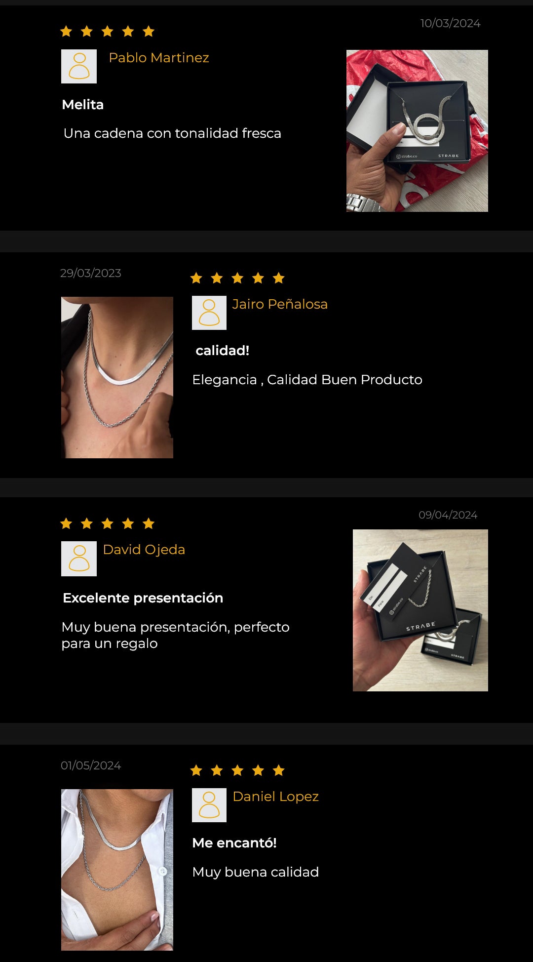 Descubre la elegancia de nuestra exclusiva cadena, diseñada para quienes valoran el estilo y la durabilidad. Fabricada en acero inoxidable quirúrgico de alta calidad, está hecha para resistir el uso diario. Disfruta de tranquilidad con nuestra garantía de 30 días contra defectos de fabricación.